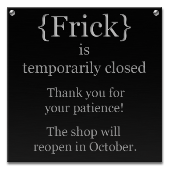 tempclosed.png Posted by Fricka on September 4, 2013 Closing up shop for a bit to do some renovating. Most of my stuff is available on the Marketplace. Share this: Click to share on Facebook (Opens in new window) Facebook Click to share on X (Opens in new window) X Like Loading... Related